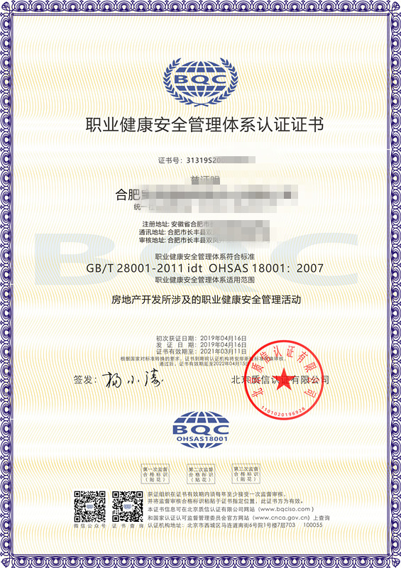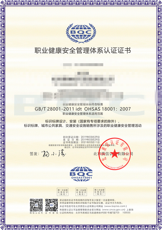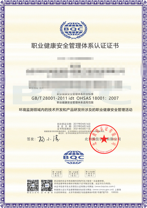 北京質信認證是國家認證認可監(jiān)督管理委員會批準(批準號:CNCA-R-2017-313)的獨立公正的三方審核認證機構,可從事ISO9001質量管理體系認證、ISO14001環(huán)境管理體系認證、ISO45001職業健康安全管理體系認證,頒發(fā)相應的認證證書。質信認證由我國認證界資深從業人士發(fā)起設立,目標是成為一家國際領先民族認證品牌,在扁平化的全球競爭中,不斷發(fā)展壯大自己,有力地服務于各類組織。